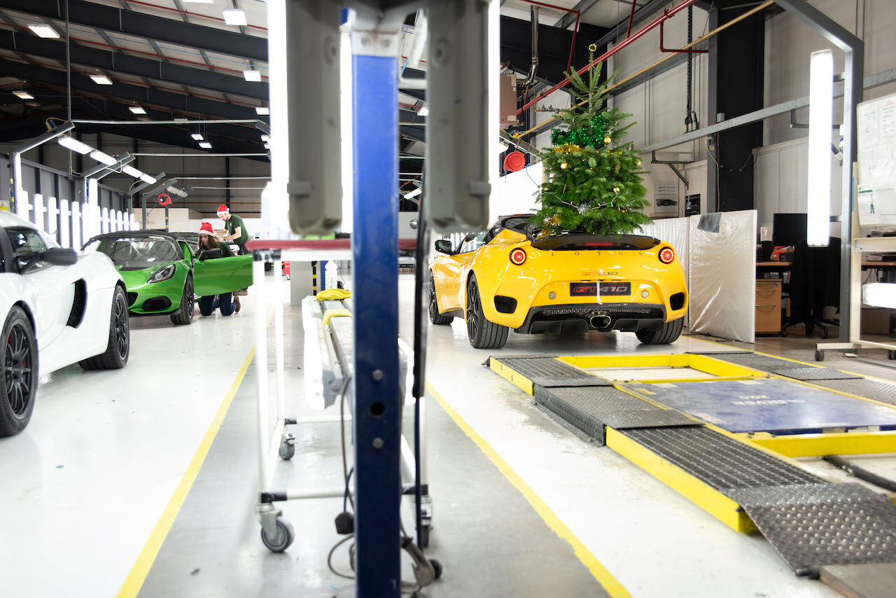 Lotus no encuentra mejor forma de felicitar la Navidad que derrapando en su sede. Galería de fotos
