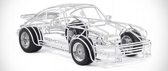 Esta escultura de alambre de un Porsche 911 a tamaño real es una obra de arte