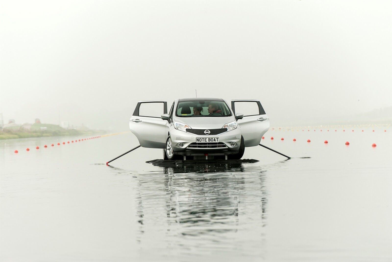 Lógicamente, el coche no flotaba, Simplemente lo colocaron sobre una balsa, como podrás ver en el vídeo a continuación. Tuvo una gran cobertura mediática, tal y como merecía la originalidad de la acción.... ¿pero habrían medido qué hubiera ocurrido si el evento saliese mal y docenas de periodistas estuviesen cubriendo cómo se hundía un Nissan Note? En ese sentido es de aplaudir la valentía de la marca. Disfruta del vídeo: