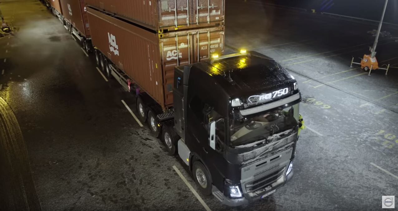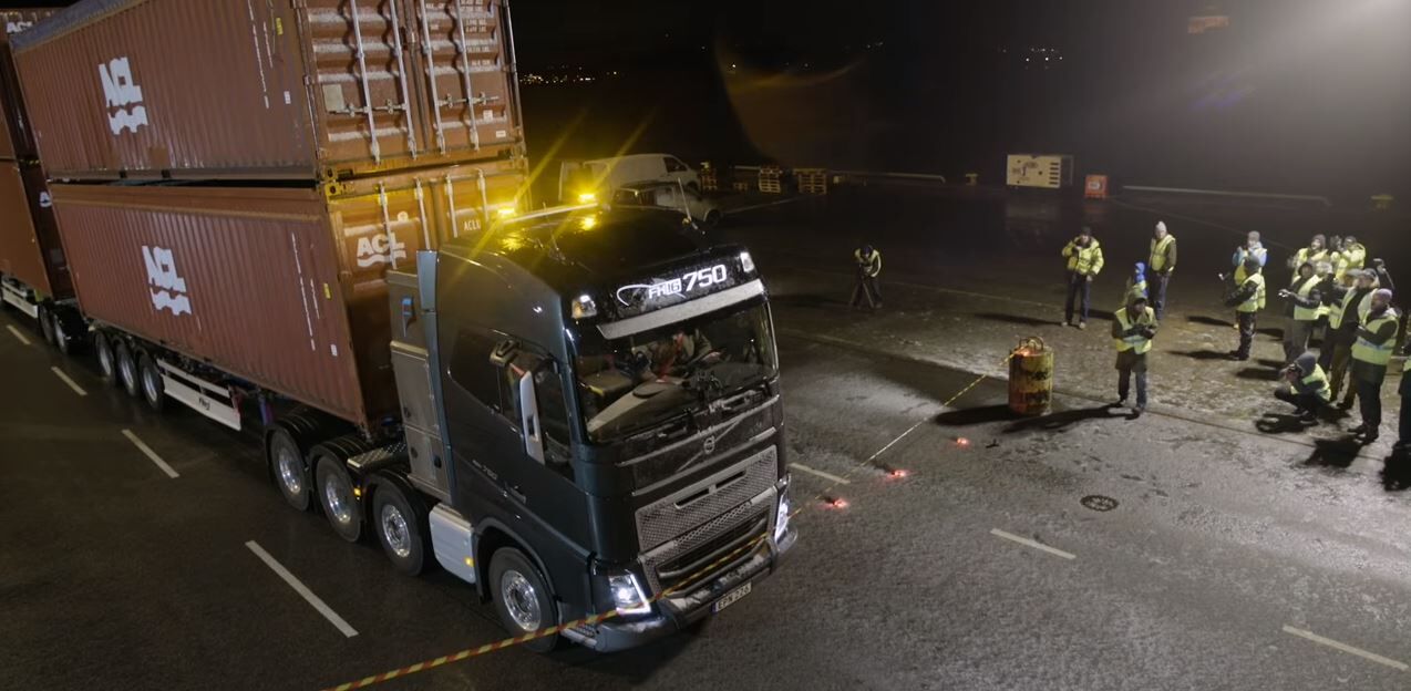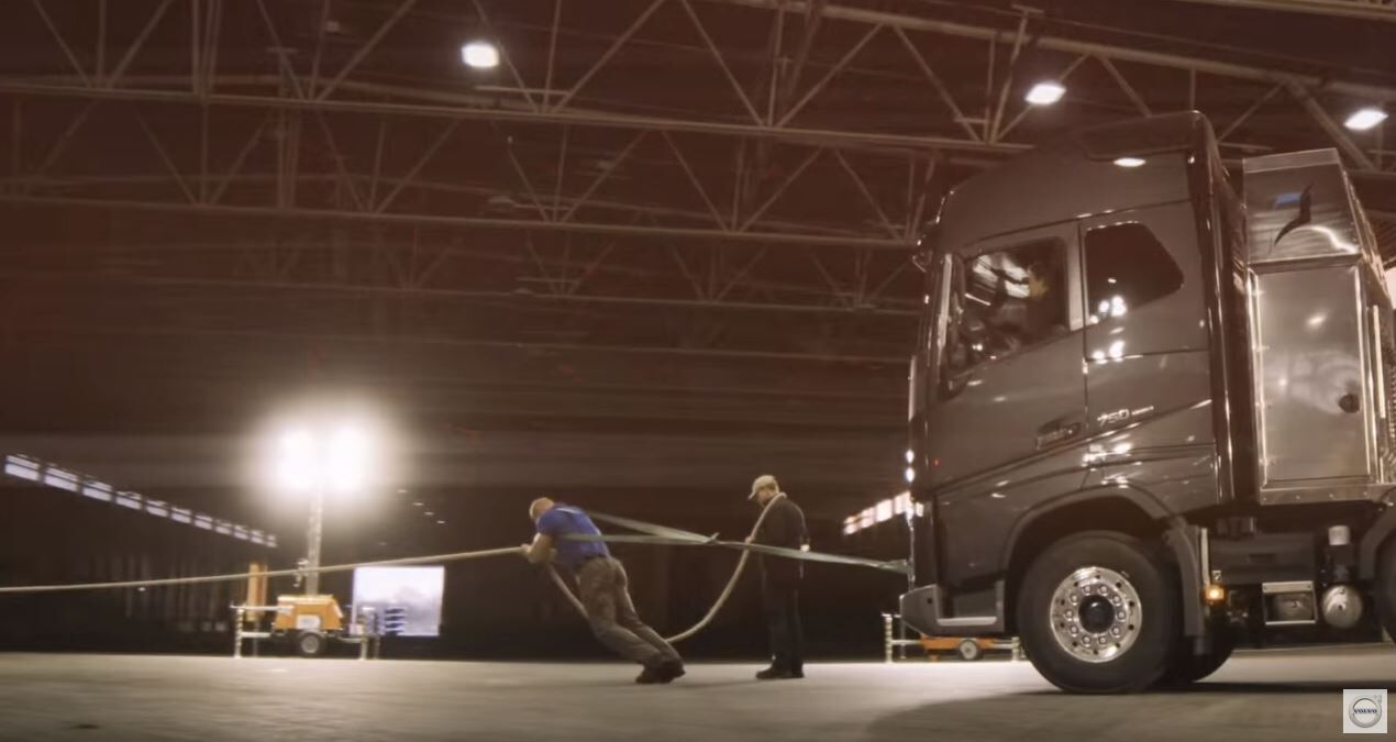 Esta espectacular campaña de publicidad llevada a cabo en la terminal de Gothenburg intenta demostrar la gran capacidad que posee el Volvo FH16 con motor turbodiésel de 16,1 litros y 3.550 Nm. Sin embargo, la clave del acertijo no se encuentra en estas cifras sino en la transmisión I-Shift encargada de digerir toda la fuerza de su motor y así conseguir mover este tren de carretera de 300 metros de longitud.